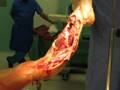 Sustained severe Grade 3 open fracture tibia and fibula with extensive bone loss